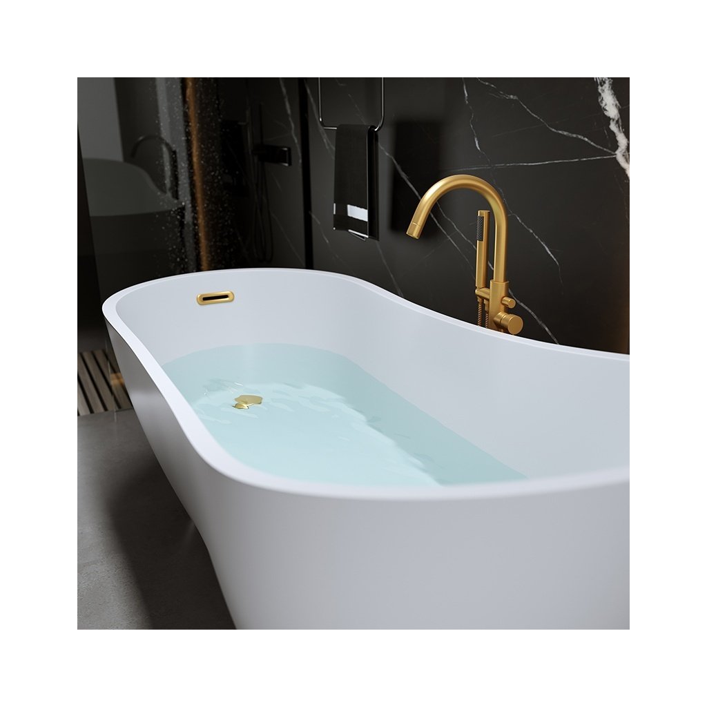 Volně stojící akrylátová vana HYD-FOR520B 160x75 bílá, odtokový komplet zlatý kartáčovanýObjevte naše volně stojící vany vyrobené z jedinečného bílého sanitárního akrylátu s zesíleným skelným vláknem. Povrch akrylátu je ošetřen revolučním Anti-Wipe nátěrem - antibakteriální vrstva. Vany z naší nabídky se vyznačují kombinací moderního stylu s komfortním používáním.