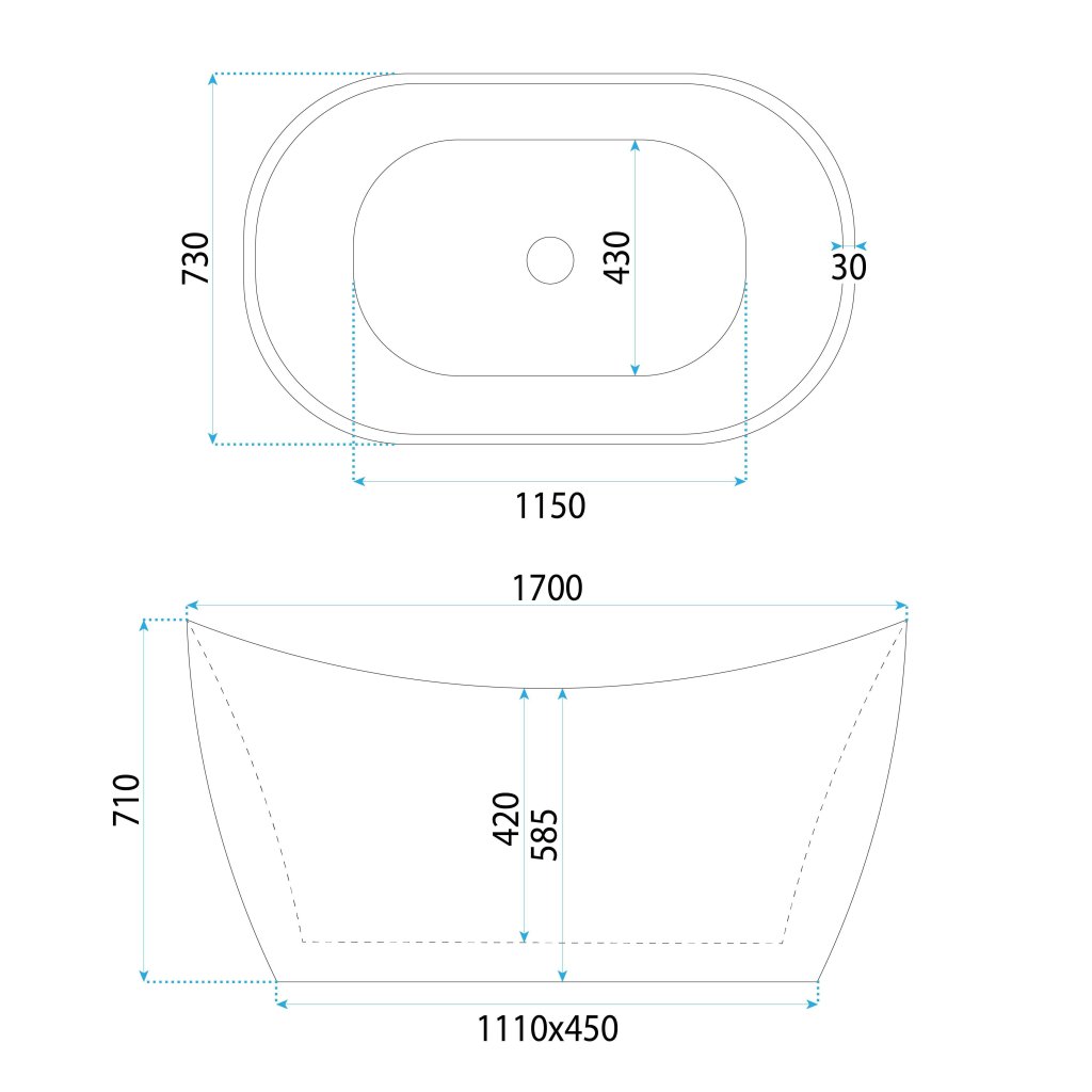 Volně stojící akrylátová vana REA Atena 170, bílá