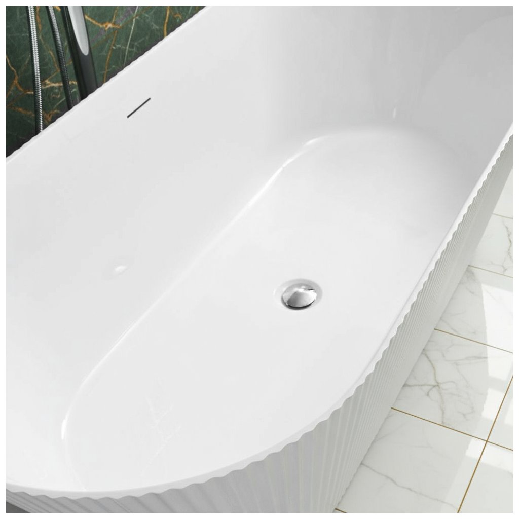 Vyrobena z vysoce kvalitního akrylu, Ofelia nabízí dokonale hladký povrch, odolnost proti poškrábání a zároveň lehkou a trvanlivou konstrukci. Akryl udržuje teplotu vody, což umožňuje dlouhé a relaxační koupání. Ergonomický tvar vany poskytuje pohodlnou oporu těla a maximální komfort i při delším odpočinku. Díky volně stojící konstrukci může být vana Ofelia umístěna kdekoli v koupelně — u stěny, v rohu nebo uprostřed místnosti, čímž vzniká elegantní a harmonická koupelnová zóna. Žebrovaná boční struktura nádherně odráží světlo a dodává prostoru hloubku a výjimečný půvab.