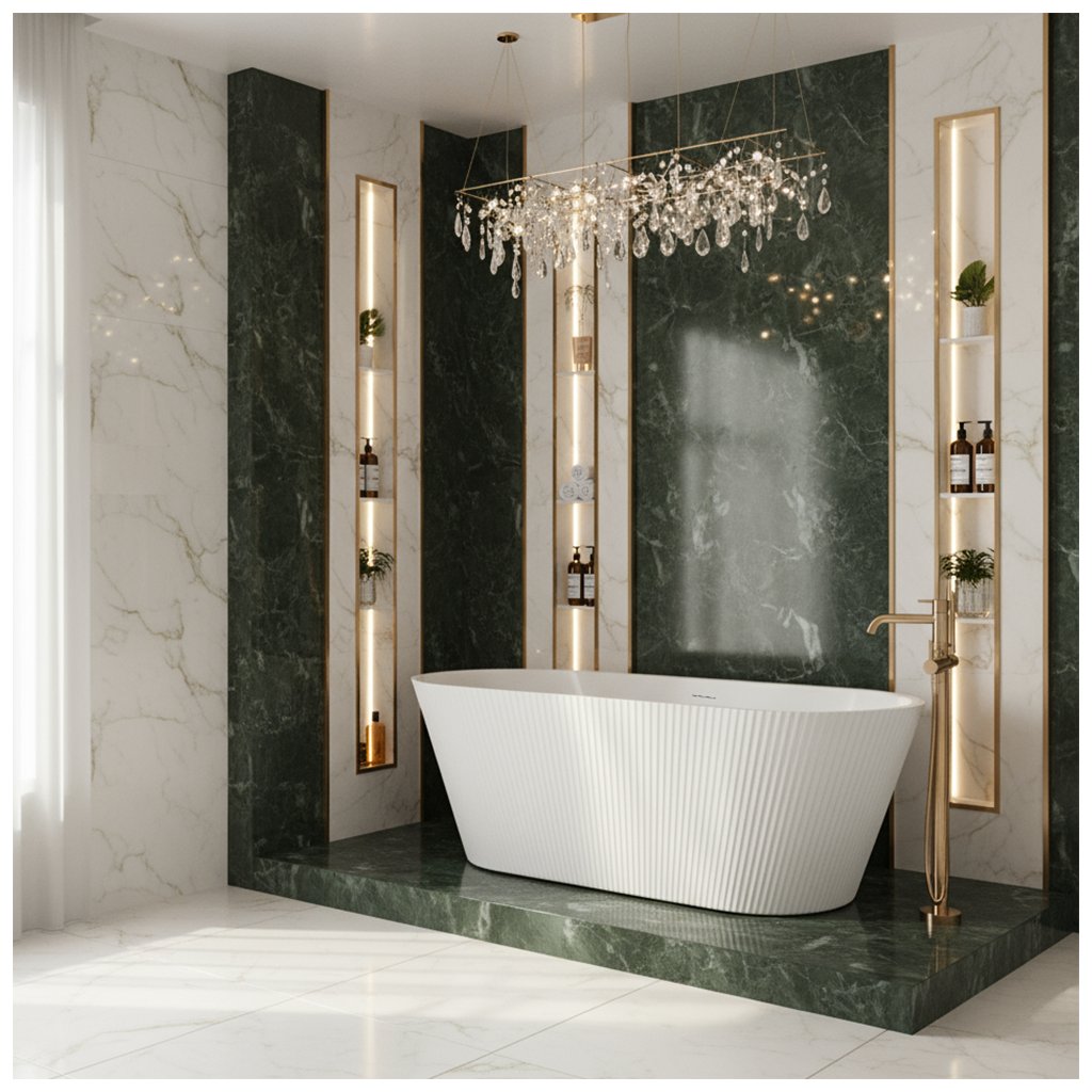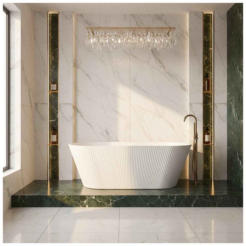 Vana Ofelia představuje ideální spojení designu a funkčnosti, určené pro ty, kteří oceňují komfort a rafinovanou estetiku. Její žebrovaný povrch přidává koupelně výjimečný charakter a vnáší jemný dekorativní akcent, který podtrhuje moderní styl interiéru.