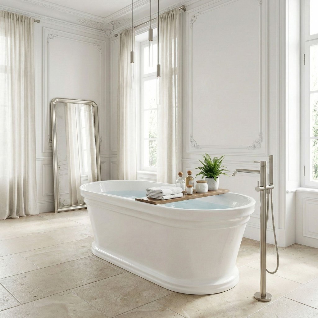 Na rozdíl od přísně minimalistických van zaujme Olivia svými dekorativními detaily. Ozdobný sokl ve spodní části a širší, jemně vyhnutý okraj jí dodávají sošný a klasický charakter. Je ideální volbou pro ty, kteří hledají v koupelně útulnost a noblesu.