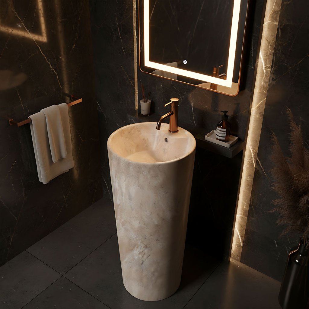 Unikátní povrchová úprava napodobující přírodní kámen dodává koupelně sofistikovanou eleganci a glamour styl. Volně stojící provedení umožňuje vytvořit centrální mycí zónu a dodává prostoru jedinečný charakter. Praktický otvor pro baterii a integrovaný přepad usnadňují instalaci a zajišťují pohodlné používání každý den.