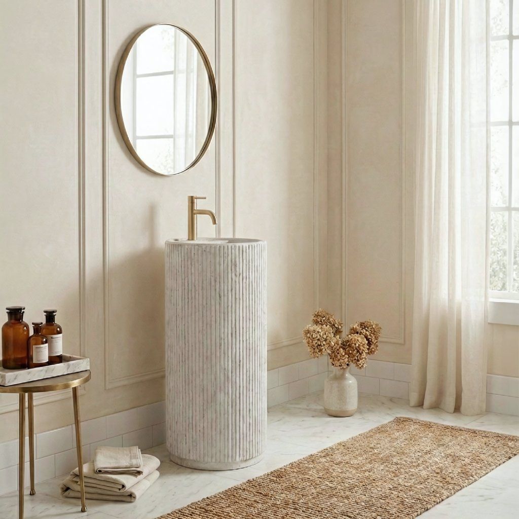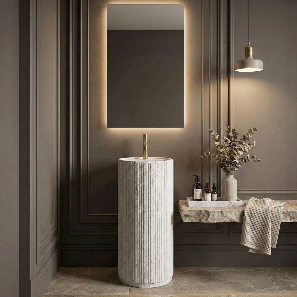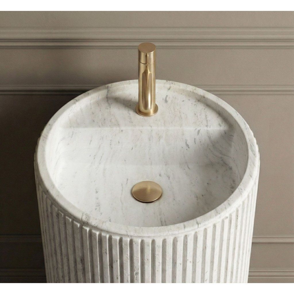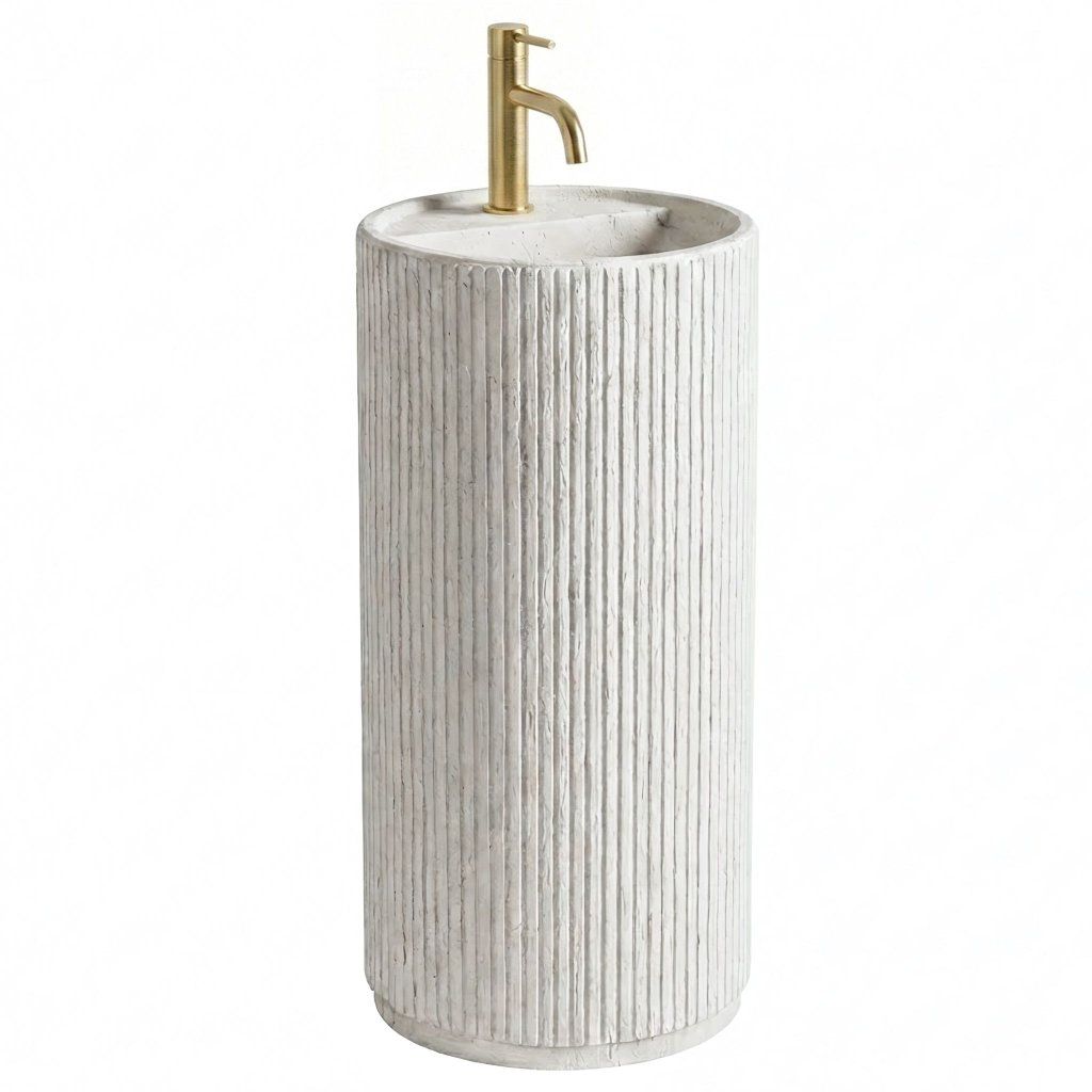 Toto volně stojící umyvadlo je volbou pro ty, kteří hledají výrazný design, ale zároveň oceňují čistotu forem a střídmost. Konstrukce typu „totem“ působí v prostoru velmi kompaktně a elegantně. Hlavním vizuálním lákadlem je unikátní drážkovaná struktura. Svislé drážky po celé výšce sloupu vytvářejí zajímavou texturu, která krásně láme světlo a oživuje interiér koupelny.