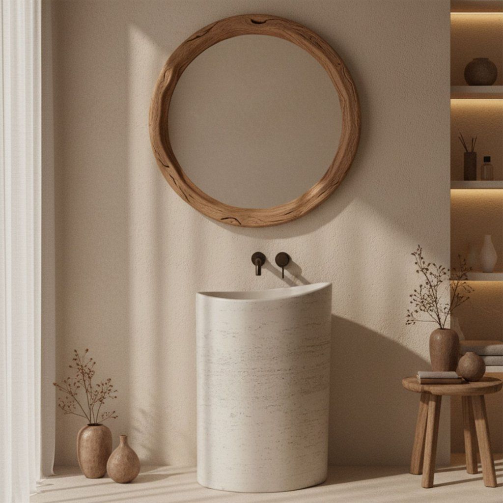 Tento výjimečný model je poctou organickému designu, ve kterém tvar vychází z přímé inspirace přírodou. Umyvadlo je volbou pro ty, kteří chtějí proměnit koupelnu v domácí útočiště. Jeho kamenná estetika a asymetrický tvar skvěle zapadají do stylů jako boho, japandi či moderní minimalismus a vytvářejí ideální kulisu pro relaxační každodenní rituály.
