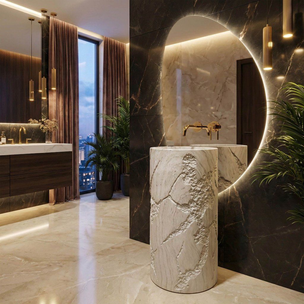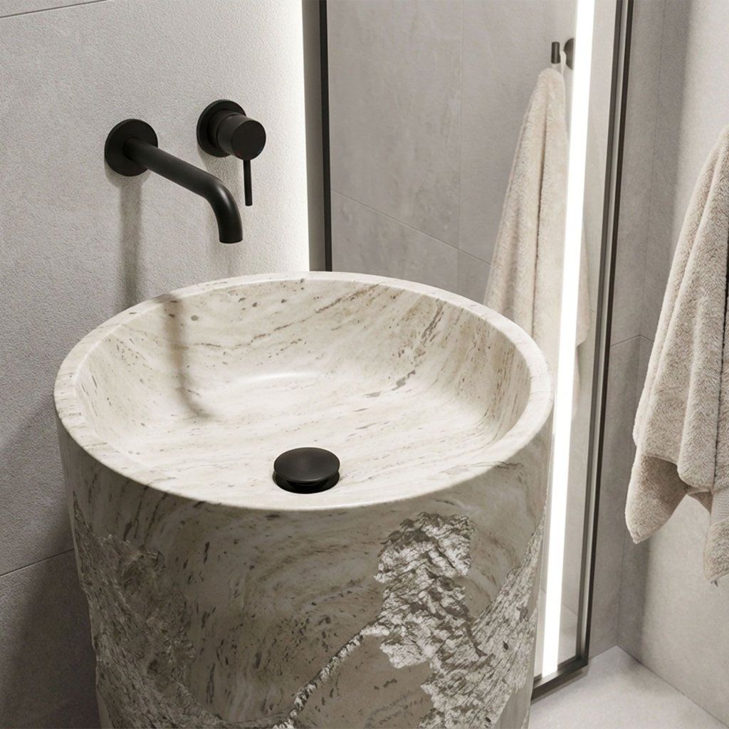 Konstrukce umyvadla je navržena jako čistý monolit bez otvoru pro baterii a bez přepadu. To z něj činí ideálního partnera pro designové vysoké podlahové baterie nebo elegantní podomítkové systémy ze zdi. Díky pevné konstrukci a preciznímu zpracování je toto umyvadlo investicí, která je nejen krásná, ale také odolná vůči mechanickému poškození a vlhkosti.