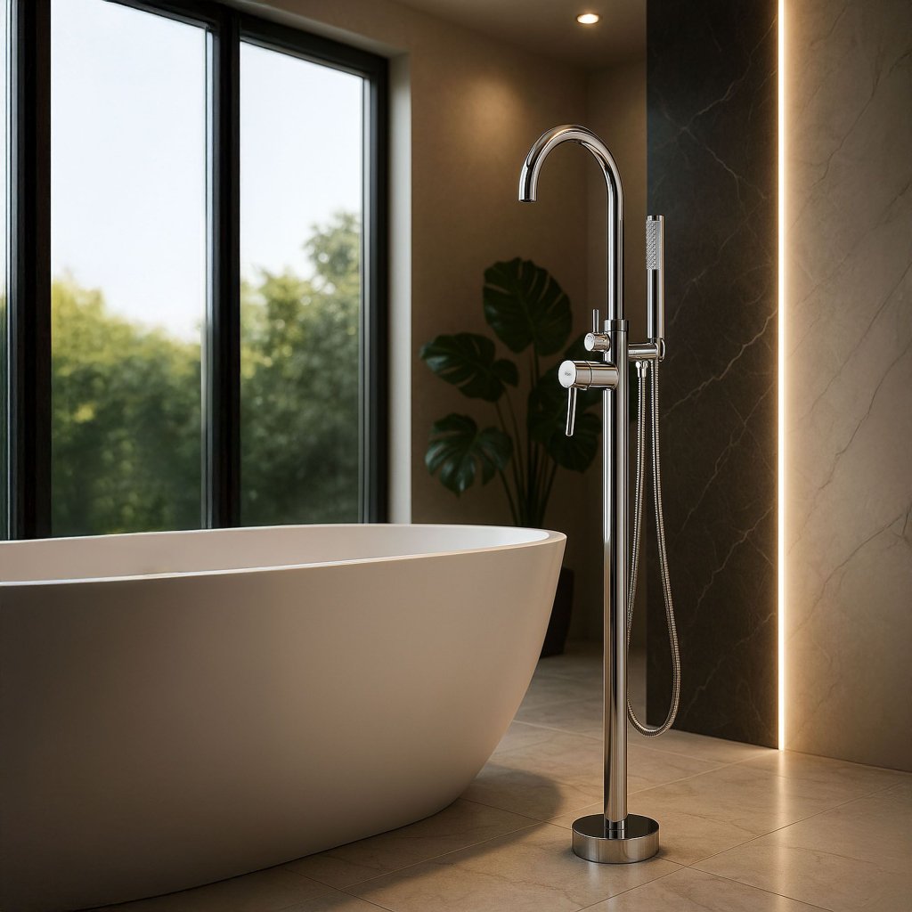 Volně stojící vanová baterie Lungo v elegantním provedení s lesklým chromem je ideální volbou pro ty, kdo hledají funkční a designově čisté řešení do moderní koupelny. Její minimalistický tvar perfektně ladí s volně stojícími vanami a dodává celému prostoru sofistikovaný vzhled.