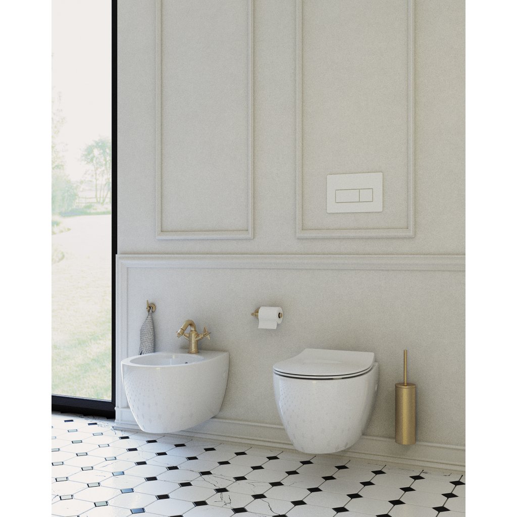 WC štětka z kolekce Temisto se perfektně hodí k bateriím a ostatním doplňkům ze stejné kolekce. Vyrobena z nerezové oceli,je odolná proti vlhkosti a zajišťuje dlouhou životnost. S povrchovou úpravou z mosazi dodává koupelně teplo a je ideální pro stylizované aranžmá. Toaletní štětka v sobě spojuje estetiku i funkčnost a stává se tak nepostradatelným prvkem každé stylové koupelny.