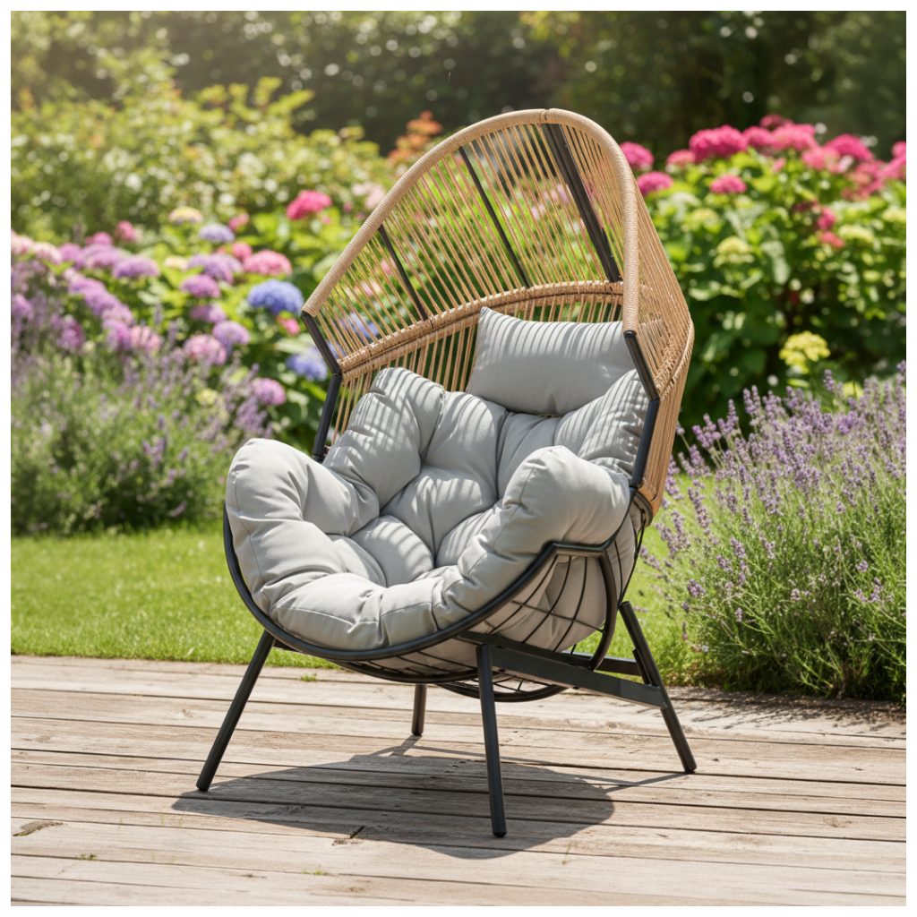 - Materiál: ocel/umělý ratan/tkanina