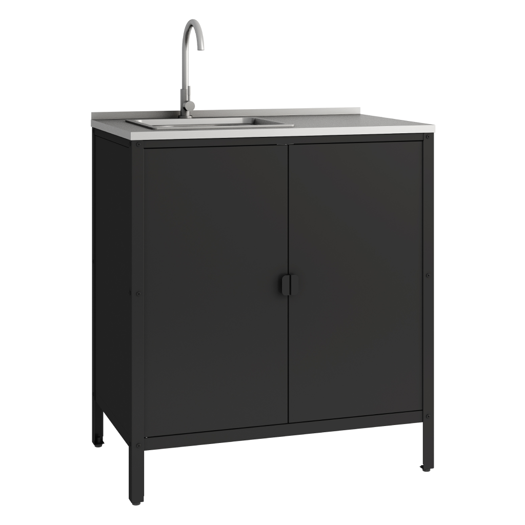 Zahradní kuchyňská skříňka INES TYP 5 představuje dokonalé spojení funkčnosti a moderního designu pro vaše venkovní vaření. Tato elegantní černá skříňka s integrovaným nerezovým dřezem se stane nepostradatelným pomocníkem při pořádání zahradních oslav i rodinných sešlostí. Její robustní konstrukce z kvalitní oceli s práškovým lakováním zaručuje dlouhou životnost a vysokou odolnost vůči vnějším vlivům.
