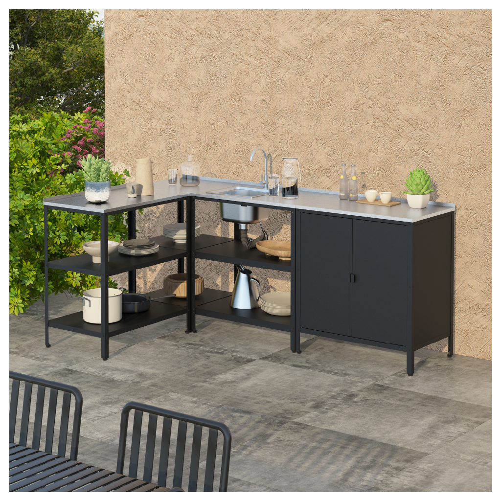Zahradní kuchyňský ostrůvek, ocel, černá, INES TYP 1