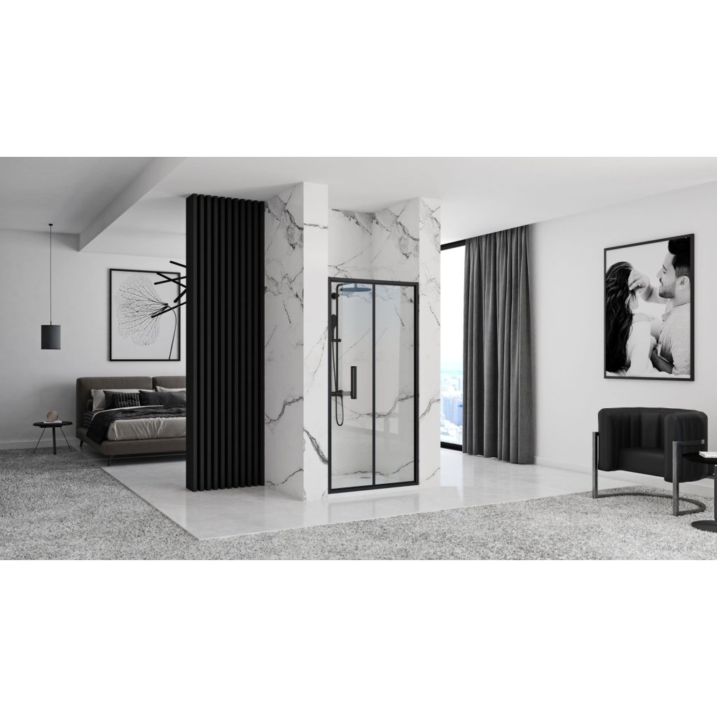 Zalamovací sprchové dveře REA RAPID FOLD 100 cm pro instalaci do niky, černé/transparent - bez vaničky