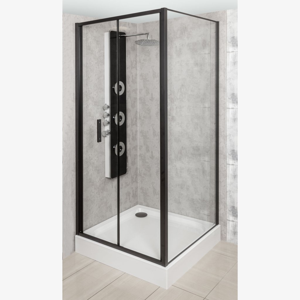 Konstrukce je tvořena pevnými hliníkovými profily, které zajišťují stabilitu a dlouhou životnost. Výplň tvoří kvalitní čiré tvrzené bezpečnostní sklo tl. 6 mm, které je odolné proti nárazu. Sklo je navíc opatřeno speciální ochrannou vrstvou (KERRA PROTECT). Ta zabraňuje usazování vodního kamene a nečistot, díky čemuž zůstává povrch déle čistý a průzračný s minimálním úsilím při úklidu.