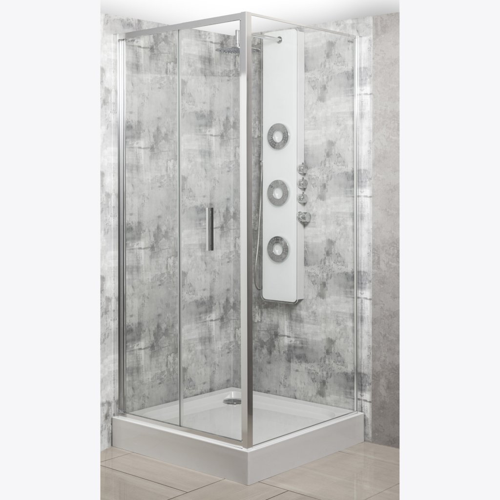 Konstrukce je tvořena pevnými hliníkovými profily, které zajišťují stabilitu a dlouhou životnost. Výplň tvoří kvalitní čiré tvrzené bezpečnostní sklo tl. 6 mm, které je odolné proti nárazu. Sklo je navíc opatřeno speciální ochrannou vrstvou (KERRA PROTECT). Ta zabraňuje usazování vodního kamene a nečistot, díky čemuž zůstává povrch déle čistý a průzračný s minimálním úsilím při úklidu.
