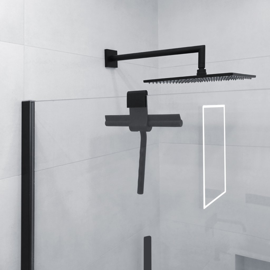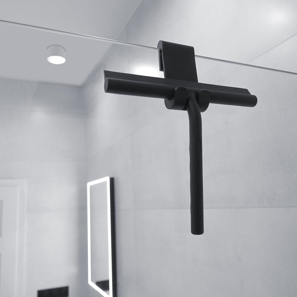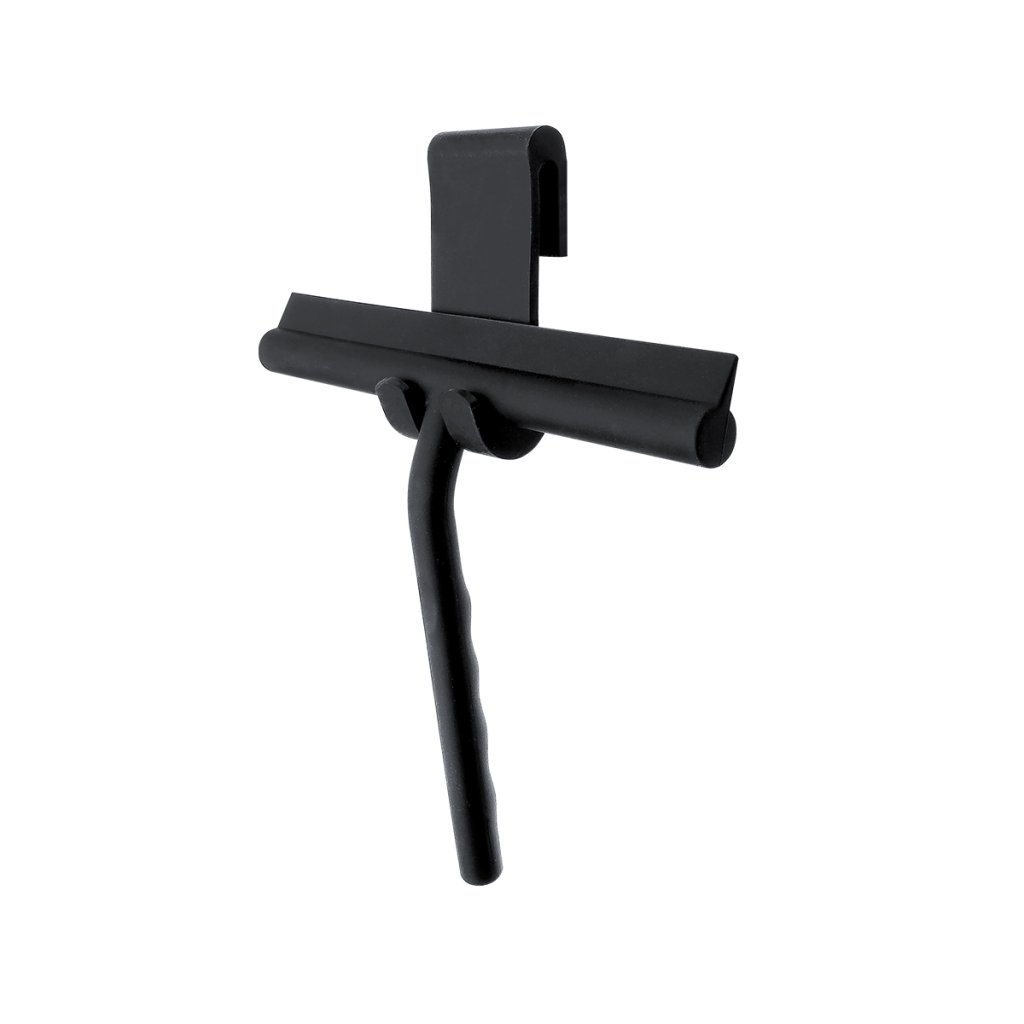Koupelnová stěrka závěsná do sprchy černá je skvělým doplňkem do koupelny. Závěsná sprchová stěrka je určena k zavěšení do sprchového koutu. Tloušťka skla max 10 mm. Stěrka je vyrobena z kovu. Celý její povrch je obalen matným silikonem. Výhodou silikonové stěrky je její pružnost. Při neočekávaném pádu neponičí sprchovou vaničku nebo vanu. Součástí stěrky je silikonový hák pro zavěšení.Povrch polyresinových, silikonových a plastových POM materiálů vyžaduje pravidelné čištění. Výrobky lze čistit mýdlovou vodou. Po vyčištění vytřete hadříkem do sucha.