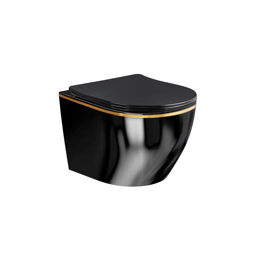 Závěsná WC mísa se SoftClose sedátkem HYD-5311, černá lesk/zlatý proužek