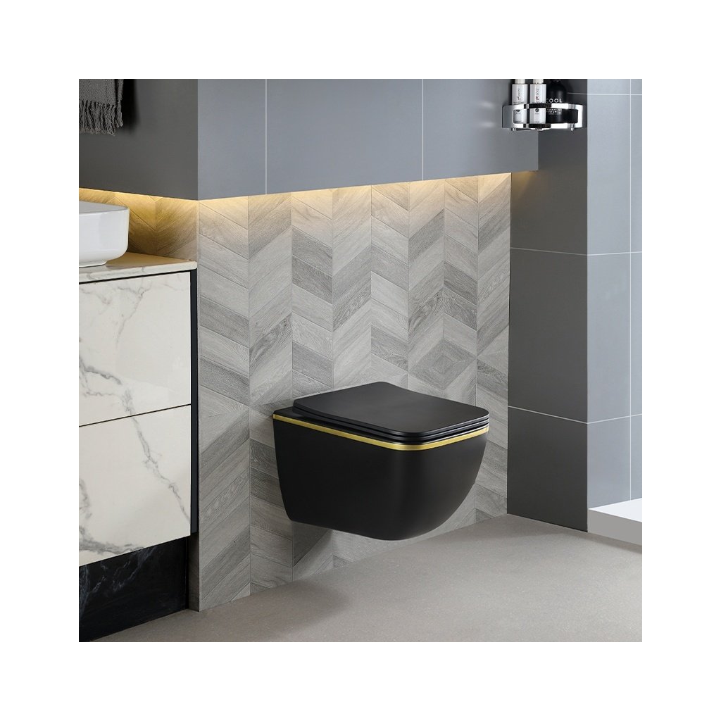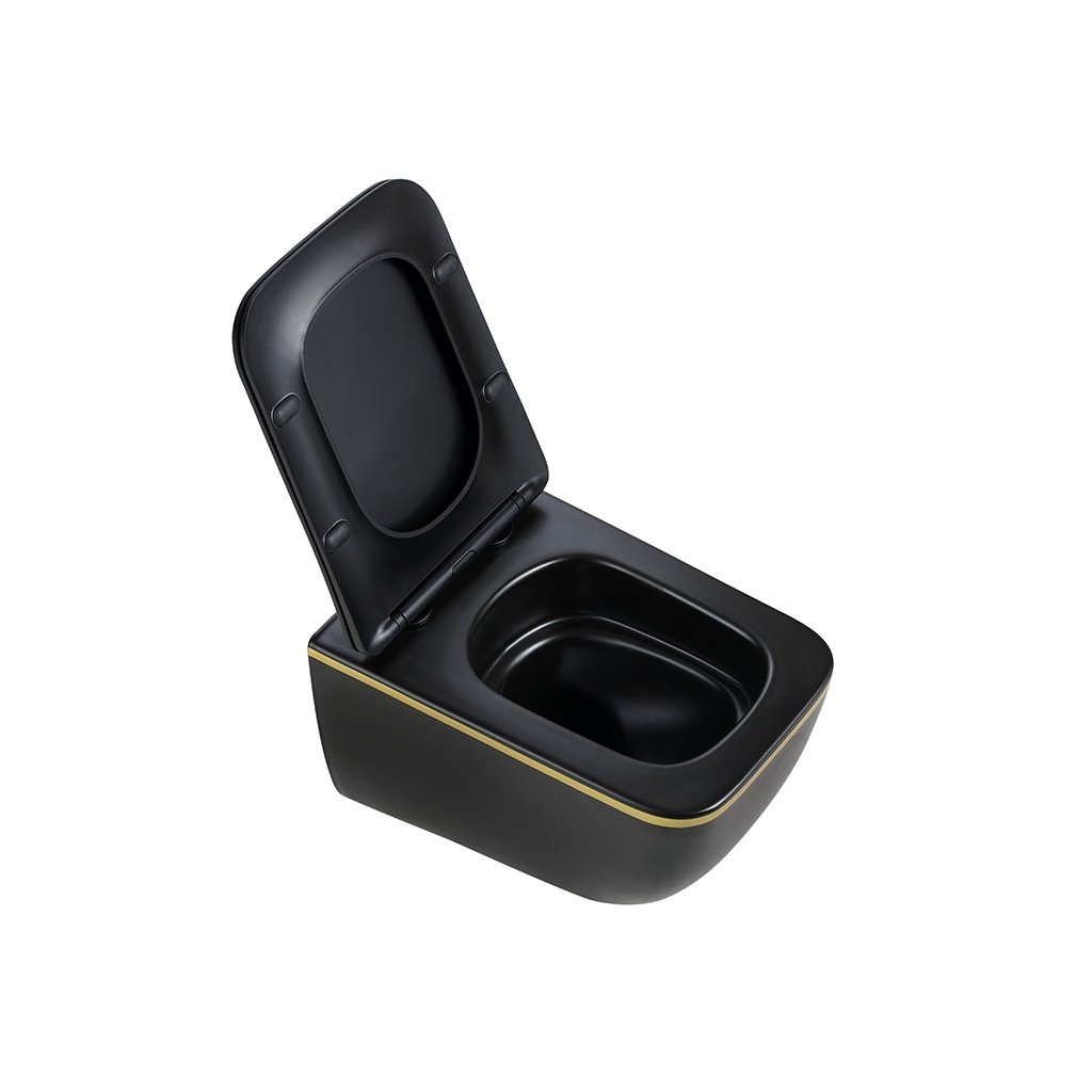Závěsná WC mísa se SoftClose sedátkem HYD-6780, černá mat/zlatý lem