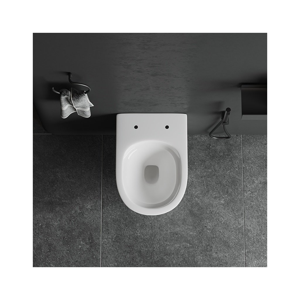 - Systém Rimless: Technologie Rimless je revolucí v udržování čistoty v koupelně. Díky bezokrajovému provedení je voda distribuována rovnoměrně po celém povrchu WC mísy, což zajišťuje efektivní oplach a eliminuje místa, kde by se mohly hromadit bakterie. Tato inovace usnadňuje čištění a vaše toaleta zachovává nejvyšší úroveň hygieny. Systém Rimless šetří vodu, což pomáhá chránit životní prostředí a snižovat účty za vodu.