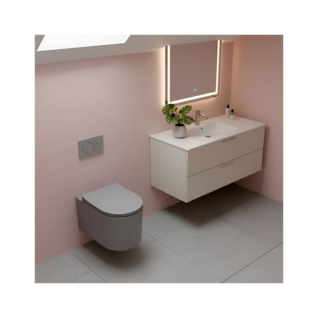 - Systém Rimless: Technologie Rimless je revolucí v udržování čistoty v koupelně. Díky bezokrajovému provedení je voda distribuována rovnoměrně po celém povrchu WC mísy, což zajišťuje efektivní oplach a eliminuje místa, kde by se mohly hromadit bakterie. Tato inovace usnadňuje čištění a vaše toaleta zachovává nejvyšší úroveň hygieny. Systém Rimless šetří vodu, což pomáhá chránit životní prostředí a snižovat účty za vodu.