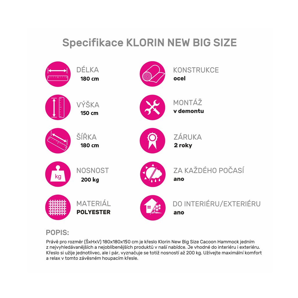 Závěsné houpací křeslo, světle šedá, KLORIN NEW BIG SIZE CACOON HAMMOCK