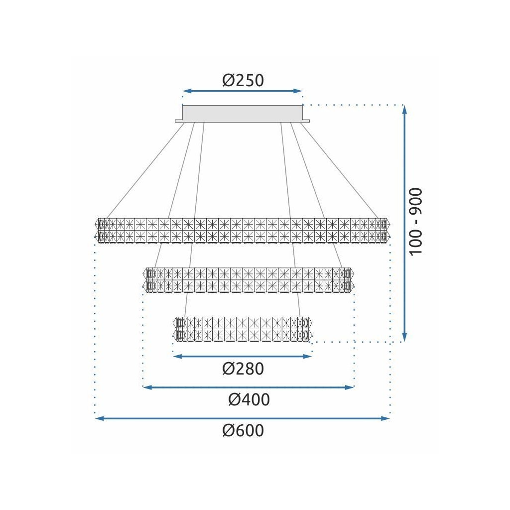Díky integrovanému LED osvětlení je lampa energeticky úsporná a nabízí dlouhou životnost bez nutnosti výměny žárovek. Nastavitelná délka zavěšení umožňuje snadné přizpůsobení výšce místnosti a vytváří působivý světelný i vizuální efekt.