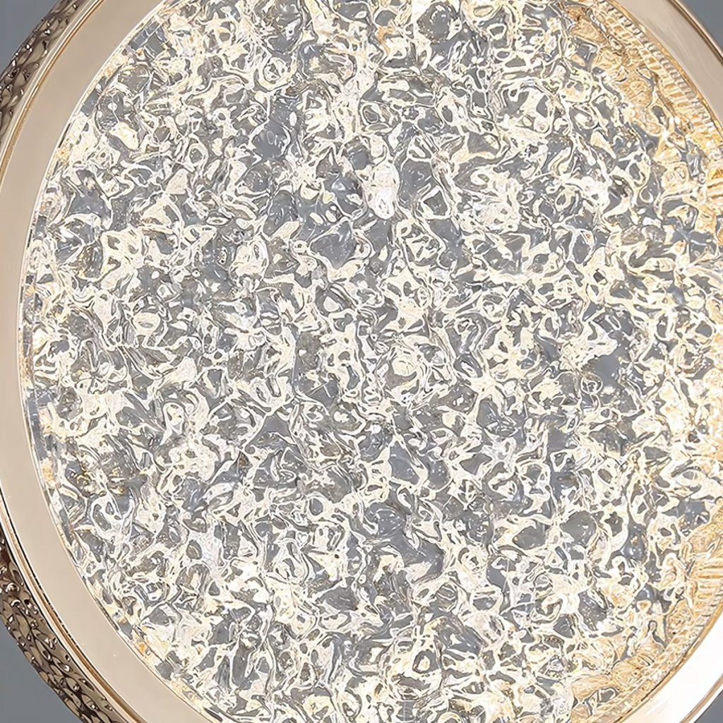 Moderní závěsné LED osvětlení se zlatým povrchem je ideální volbou pro ty, kteří chtějí dodat interiéru šmrnc, lehkost a designový charakter. Křišťálový střed z vysoce kvalitního plastu imituje broušené sklo, krásně odráží světelné odlesky a dodává každému prostoru jedinečný lesk.