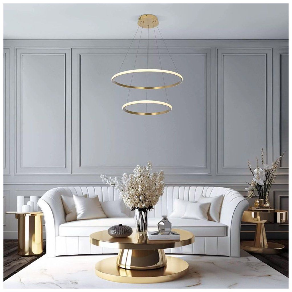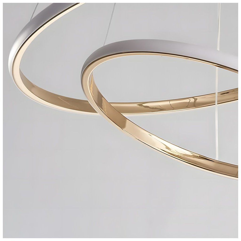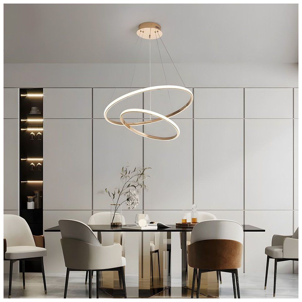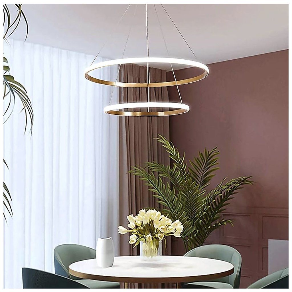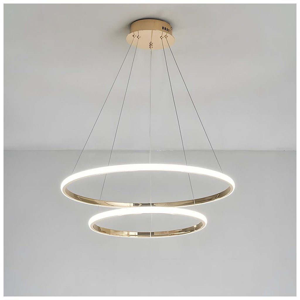 Moderní závěsné LED osvětlení s jedinečným designem kombinuje minimalistickou formu s luxusním zlatým leskem. Dva jemné světelné kruhy vytvářejí příjemné teplé světlo o teplotě 3000 K, které navozuje útulnou a elegantní atmosféru v interiéru.