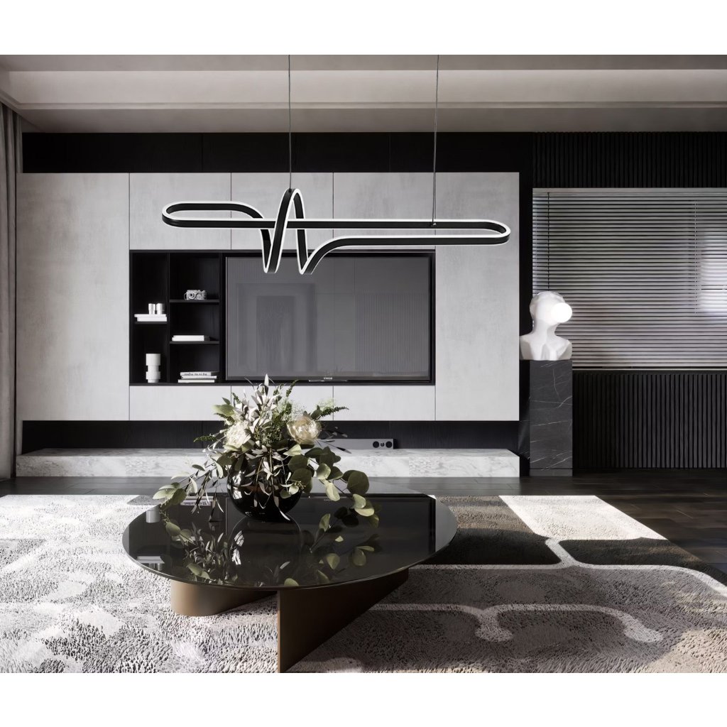 Moderní LED lampa s originálním geometrickým tvarem je ideální volbou pro ty, kteří si potrpí na designová světelná řešení. Černá konstrukce v kombinaci s bílou světelnou linkou vytváří výraznou kompozici, která upoutá pozornost a podtrhne charakter interiéru. Tento model se skvěle hodí nad jídelní stůl, do obývacího pokoje nebo kancelářských prostor.