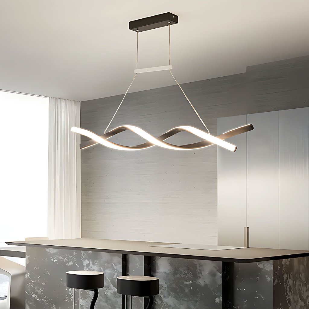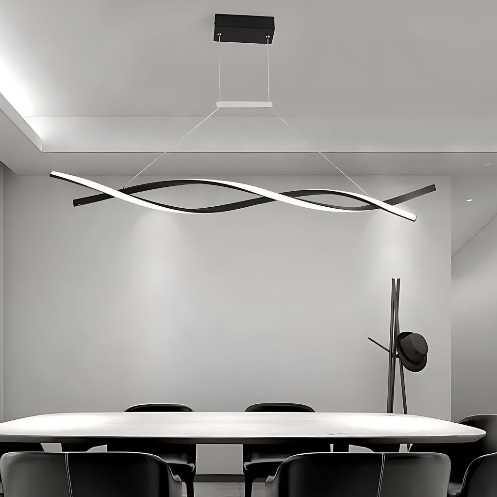 Moderní LED osvětlení je ideální volbou pro prostorné a designové interiéry. Jeho plynulá, vlnitá linie vytváří jedinečný vizuální efekt, který zaujme na první pohled. Kombinace černé konstrukce s transparentními prvky dodává celku lehkost a nadčasovou eleganci.
