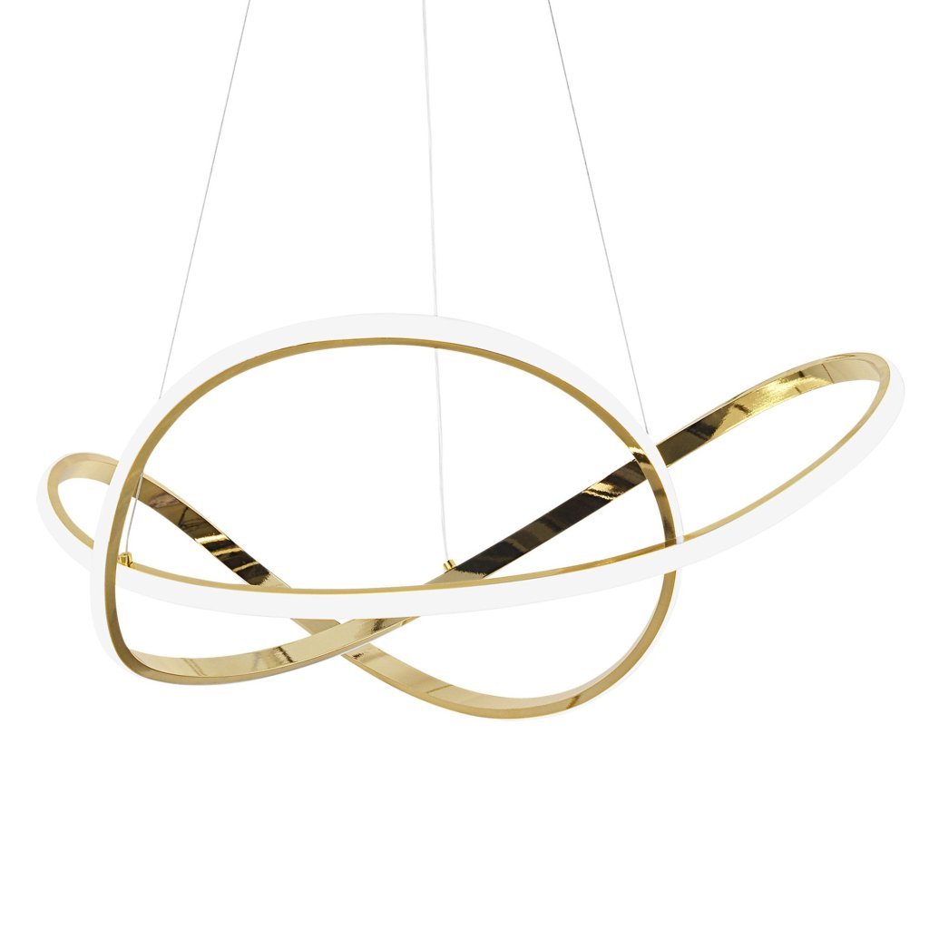 Elegantní závěsné LED osvětlení s originálním tvarem propletených prstenců je výjimečným dekorativním prvkem, který okamžitě upoutá pozornost. Jeho moderní design ve zlatém provedení vytváří efektní světelnou kompozici, která skvěle zapadne do interiérů ve stylu glamour, modern classic i minimalismu. Integrovaný LED zdroj zajišťuje rovnoměrné, příjemné osvětlení a zároveň vysokou energetickou úspornost.