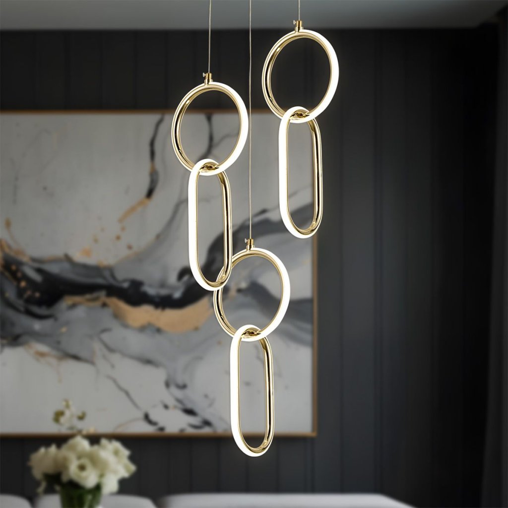 Vyrobena z kvalitního plastu a kovu, lampa zaujme nejen tvarem, ale také lehkostí a odolností. Precizní provedení zajišťuje estetický vzhled a odolnost proti každodennímu používání. Díky konstrukci se třemi zavěšenými prvky je lampa skvělým hlavním osvětlením nad jídelním stolem, v prostorném obývacím pokoji nebo moderní hale. Je také vynikající volbou do prestižních komerčních prostor – showroomů, butiků či hotelů.