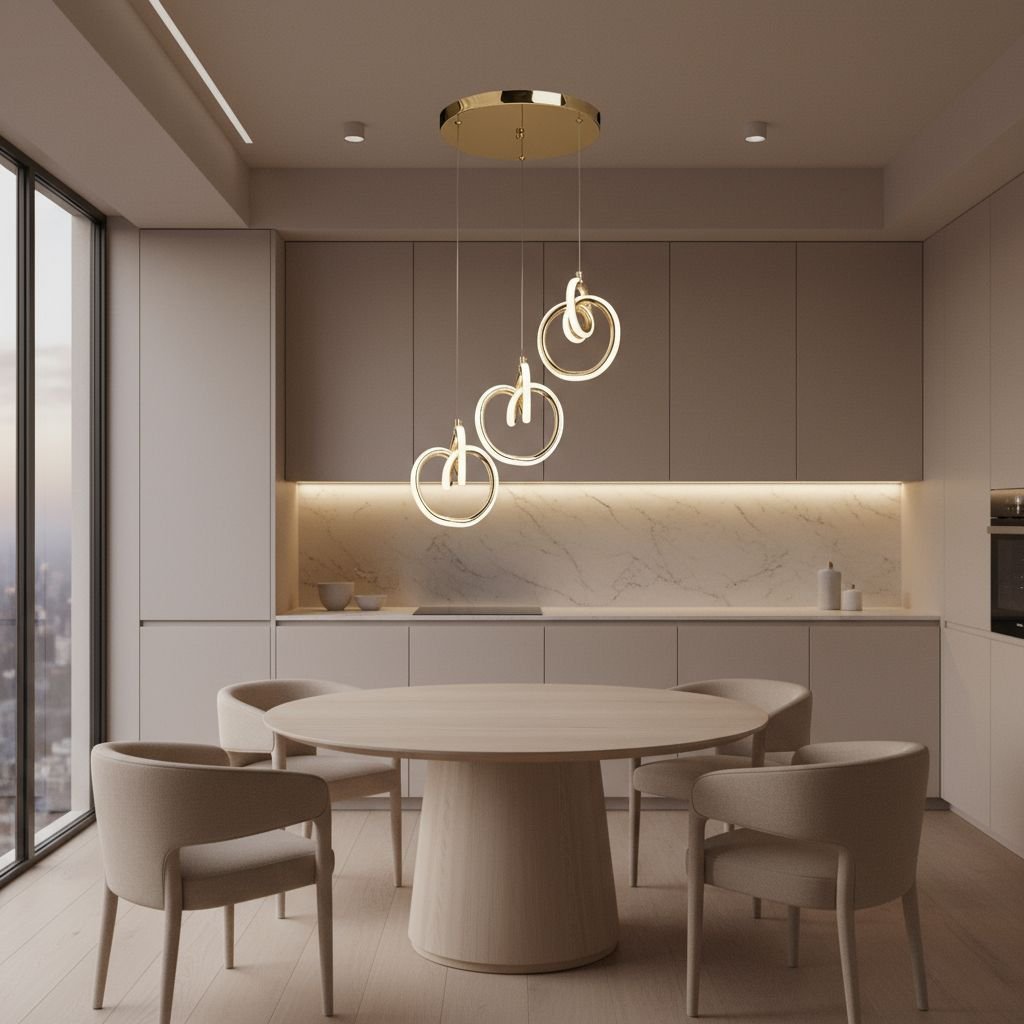 Moderní závěsné osvětlení je navrženo tak, aby kombinovalo lehkost, efektivní formu a praktickou funkčnost. Jemně zaoblené tvary vytvářejí výraznou dekorativní kompozici, která se krásně prezentuje nad jídelním stolem, v obývacím pokoji nebo v reprezentačním prostoru.