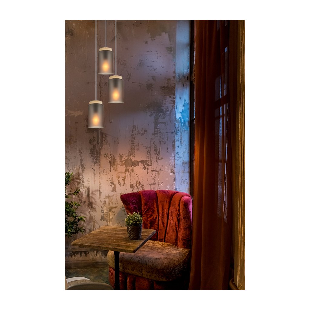 Vytvořte si jedinečnou atmosféru ve svém interiéru s elegantním závěsným svítidlem se třemi šedými stínidly.