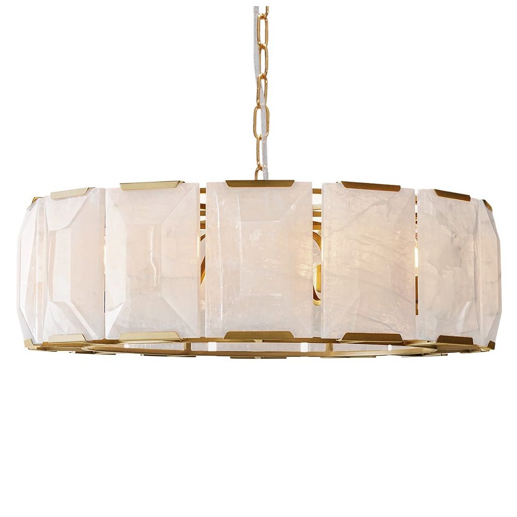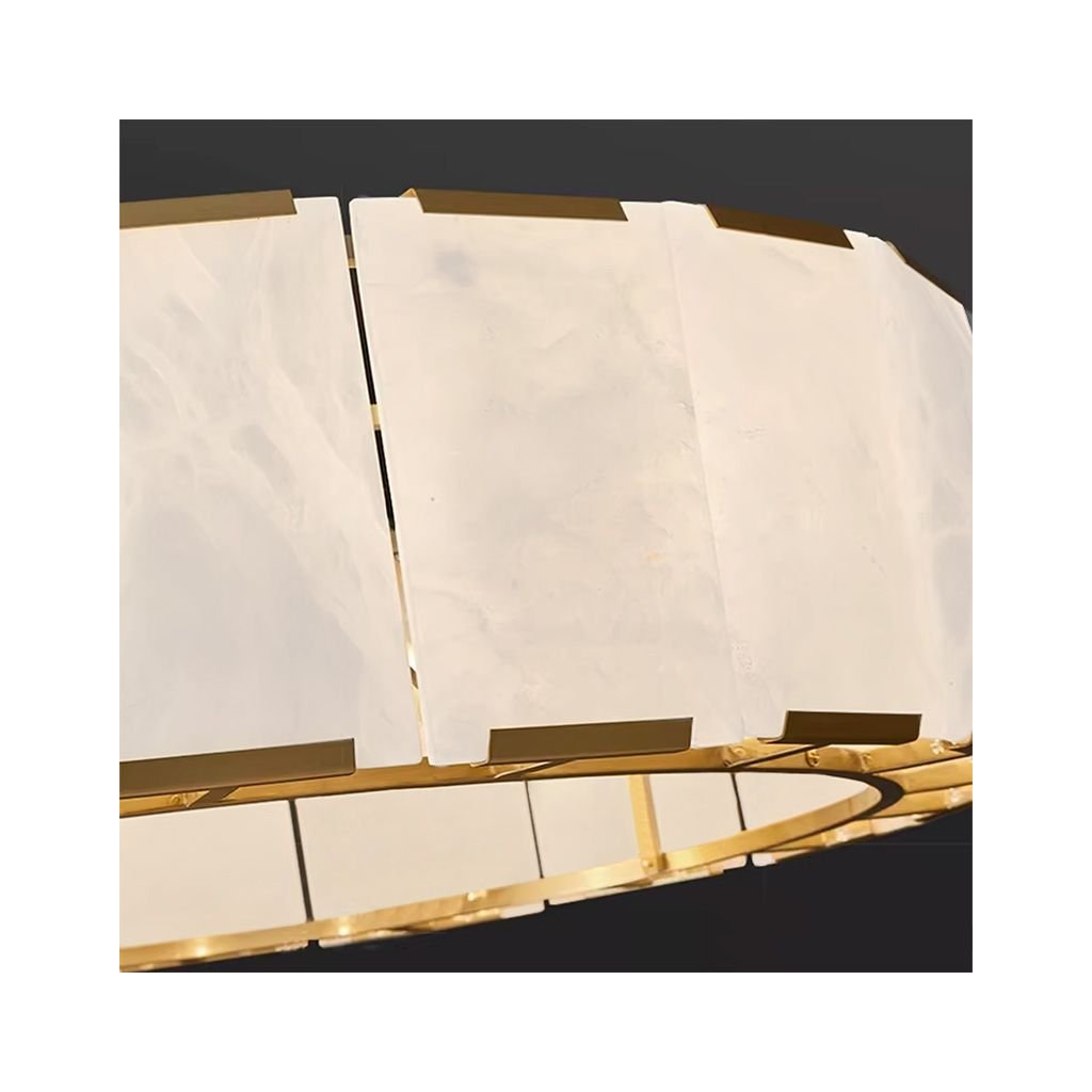 Vytříbená elegance a pevné zpracování se spojují v tomto výjimečném závěsném osvětlení, vytvářejícím efektní dekorativní prvek pro nejnáročnější interiéry. Zlatý kartáčovaný kovový rám dodává konstrukci moderní charakter, zatímco dekorativní panely imitující mramor přinášejí nádech luxusu a nadčasové elegance.