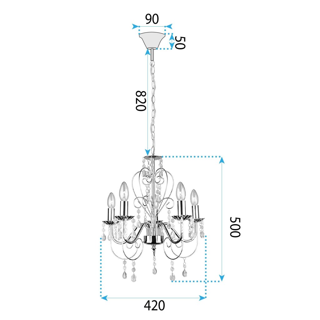 Stylové stropní osvětlení s pěti světelnými body představuje dokonalé spojení klasiky a decentního lesku. Kovová konstrukce vytváří elegantní siluetu a dekorativní prvky z průhledného materiálu jemně odrážejí světlo, čímž dodávají prostoru příjemnou a hřejivou atmosféru.