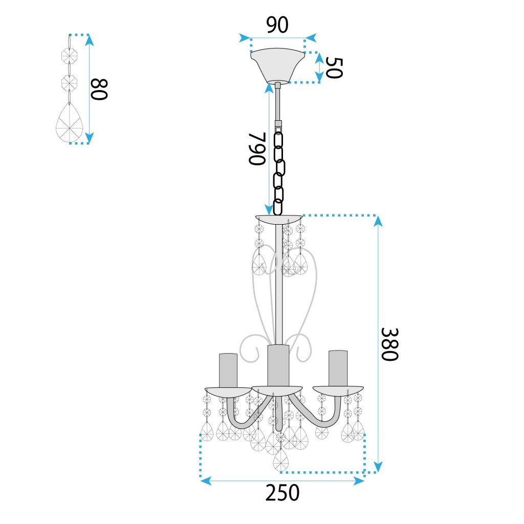 Stylový lustr se třemi světelnými body spojuje klasický design s moderní elegancí. Dekorativní prvky jemně odrážejí světlo a vytvářejí příjemnou, útulnou atmosféru v místnosti.