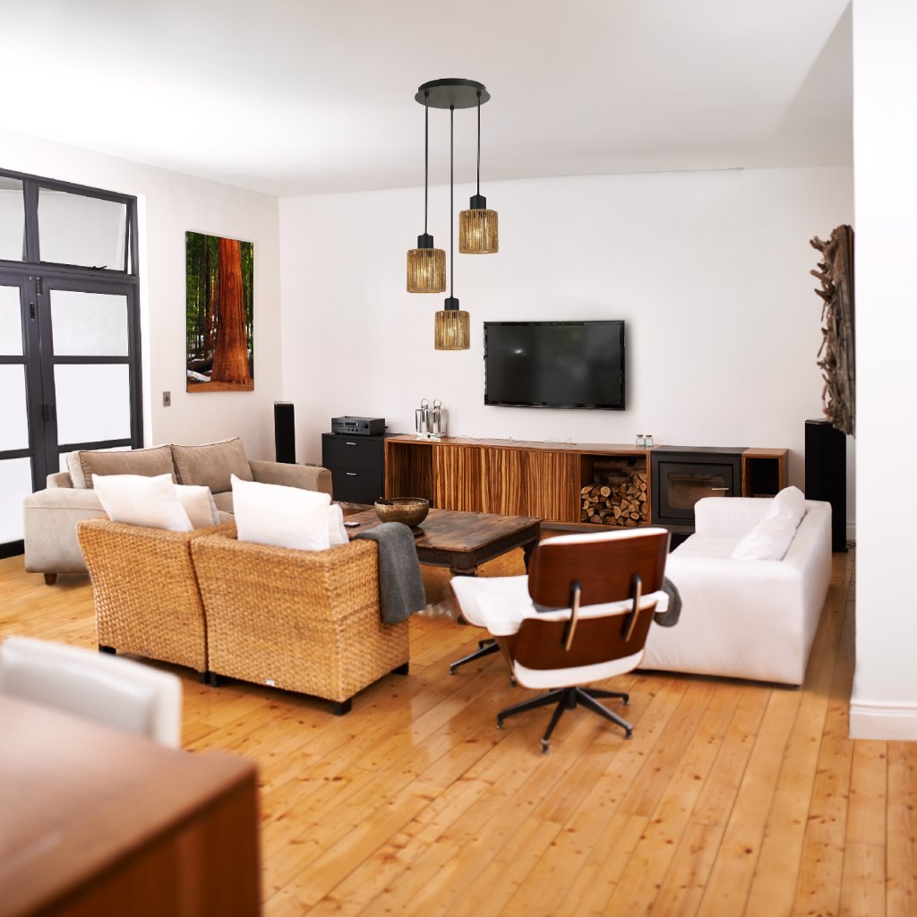 Vneste do svého interiéru jedinečnou atmosféru s elegantním závěsným svítidlem se třemi hnědými stínidly. Stínidla z kvalitního kovu a přírodního provázku jemně rozptylují světlo a vytvářejí útulnou náladu v každé místnosti – od kuchyně přes ložnici až po stylovou kavárnu.
