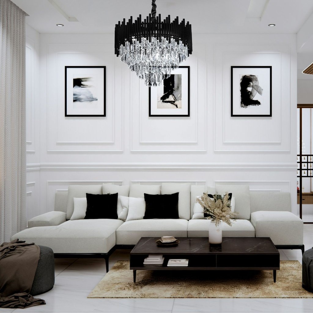 Exkluzivní křišťálové svítidlo spojuje moderní design s klasickým třpytem křišťálů. Jeho výjimečná konstrukce kombinuje křišťálové prvky s elegantními černými a chromovanými akcenty, čímž vytváří mimořádně působivý vzhled. Křišťálové detaily uspořádané ve vrstvách krásně odrážejí světlo a dodávají interiéru luxusní a stylový charakter.