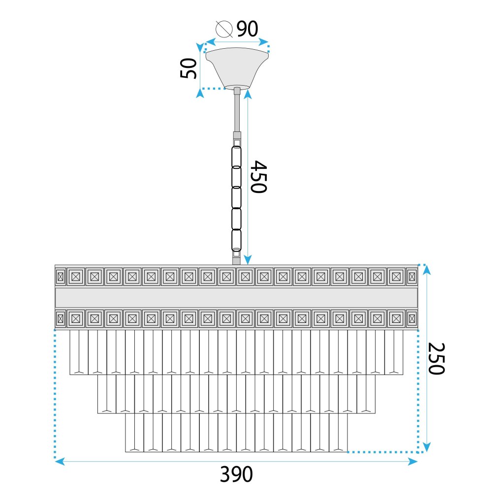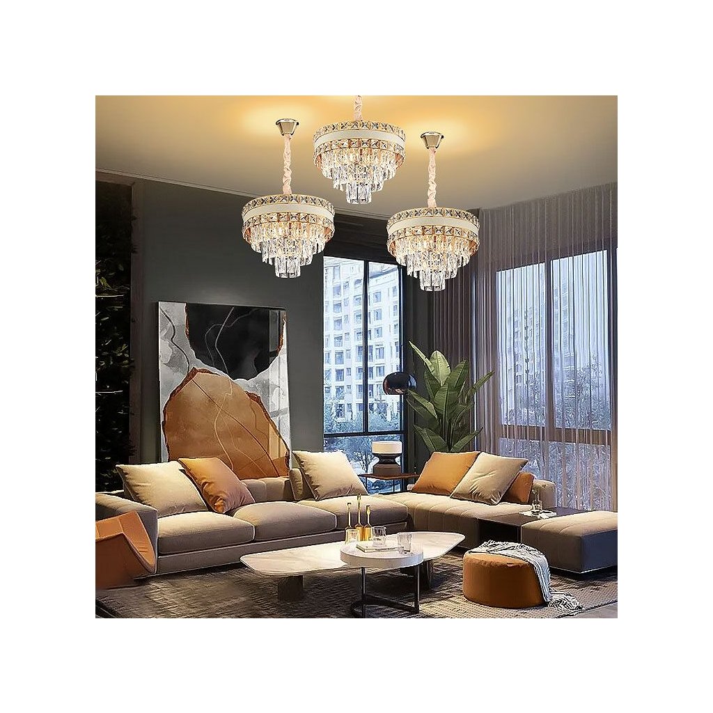 Exkluzivní křišťálové svítidlo spojuje moderní design s klasickým třpytem křišťálů. Jeho jedinečná konstrukce kombinuje skleněné kapky s elegantní zlatou konstrukcí, čímž vytváří mimořádně působivý vzhled. Křišťálové detaily uspořádané ve vrstvách krásně odrážejí světlo a dodávají interiéru luxusní a stylový charakter.