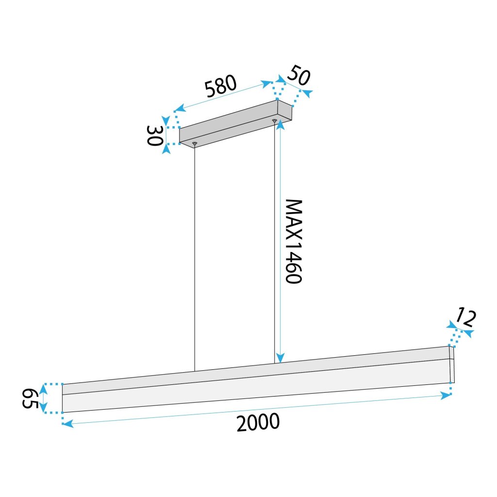 Liniový design této lampy působí velmi lehce a nezatěžuje prostor, přestože se jedná o výrazný prvek o délce 2 metrů. Výrazným benefitem je regulace výšky, která umožňuje nastavit zavěšení pomocí lanek až do délky 1500 mm. To vám dává plnou svobodu při instalaci – svítidlo lze umístit nízko nad pracovní plochu pro dosažení přímého osvětlení, nebo výše pod strop jako stylový centrální prvek haly či obývacího pokoje. Energeticky úsporná LED technologie navíc zaručuje efektivní provoz s minimální spotřebou.