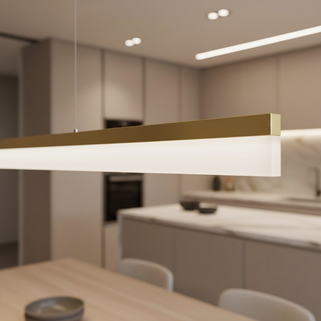 Tato moderní závěsná LED lampa o impozantní délce 2000 mm představuje vrchol lineárního osvětlení pro rozlehlé interiéry. Štíhlý kovový profil v elegantním odstínu zlatá kartáčovaná dodává prostoru nádech luxusu a architektonické čistoty. Je to ideální řešení pro osvětlení dlouhých jídelních stolů, rozměrných kuchyňských ostrůvků nebo moderních jednacích místností, kde je kladen důraz na minimalistický, ale přesto reprezentativní vzhled. Kvalitní materiály a precizní povrchová úprava zaručují stálost barev a dlouhou životnost svítidla.