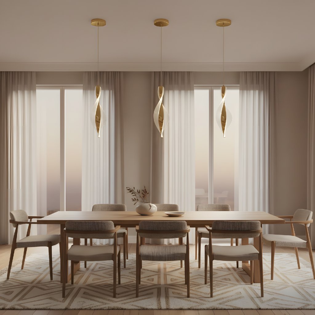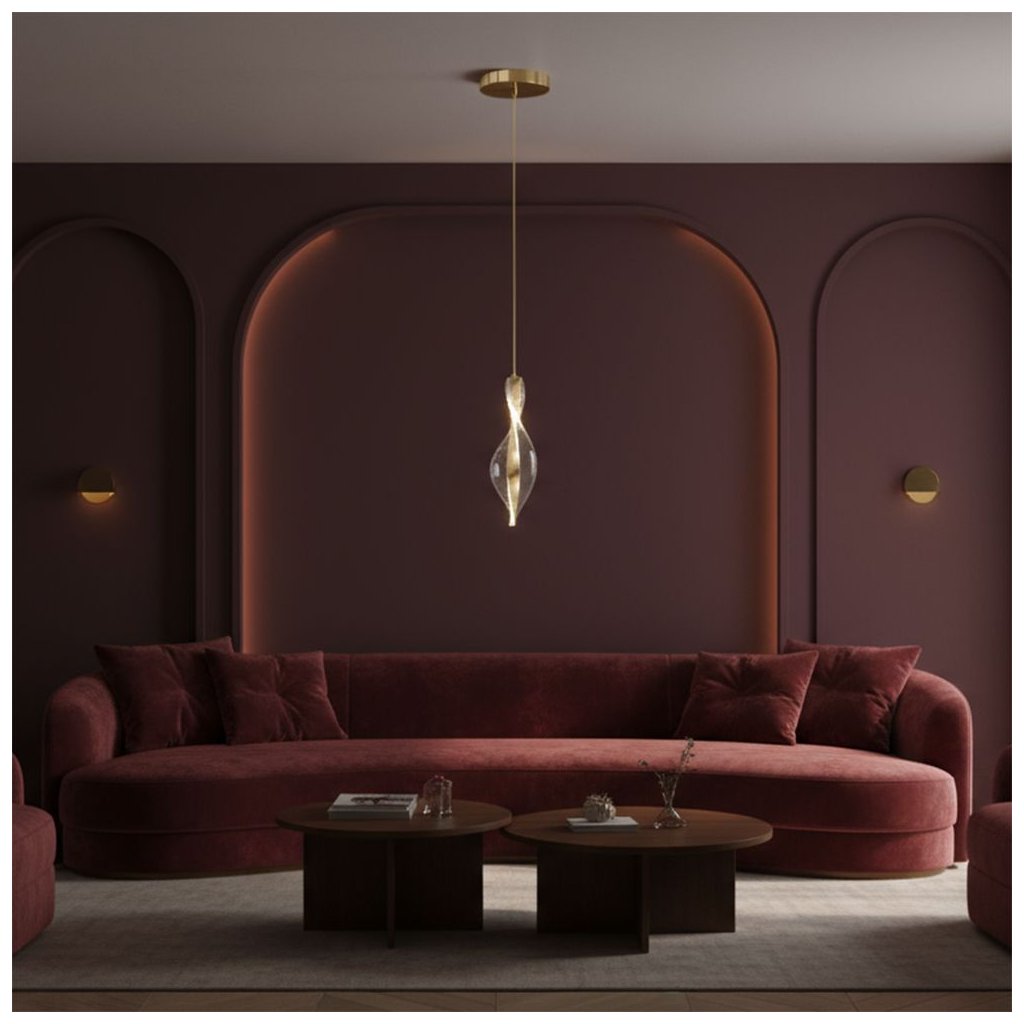 Tato elegantní závěsná LED lampa je ideálním řešením pro ty, kteří hledají osvětlení s výrazným designovým prvkem v minimalistickém balení. Štíhlé kovové tělo ve zlaté barvě je doplněno o efektní spirálu z transparentního akrylu, která při rozsvícení vytváří jemnou hru světla. Díky svému vertikálnímu uspořádání a čistým liniím svítidlo opticky nezatěžuje prostor a stává se sofistikovaným doplňkem moderních interiérů, rezidencí i stylových kanceláří.