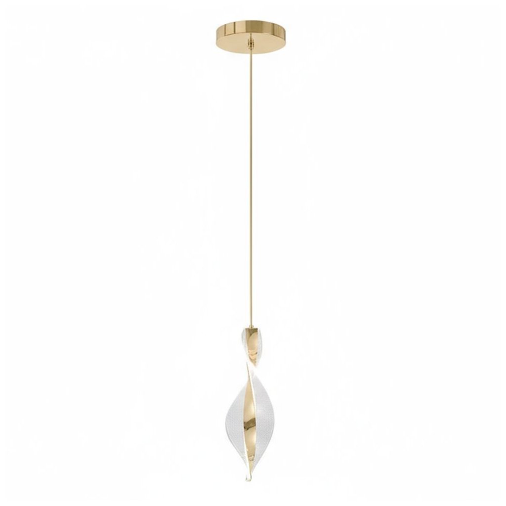 Závěsné moderní LED svítidlo se zlatým detailem a akrylovou spirálou