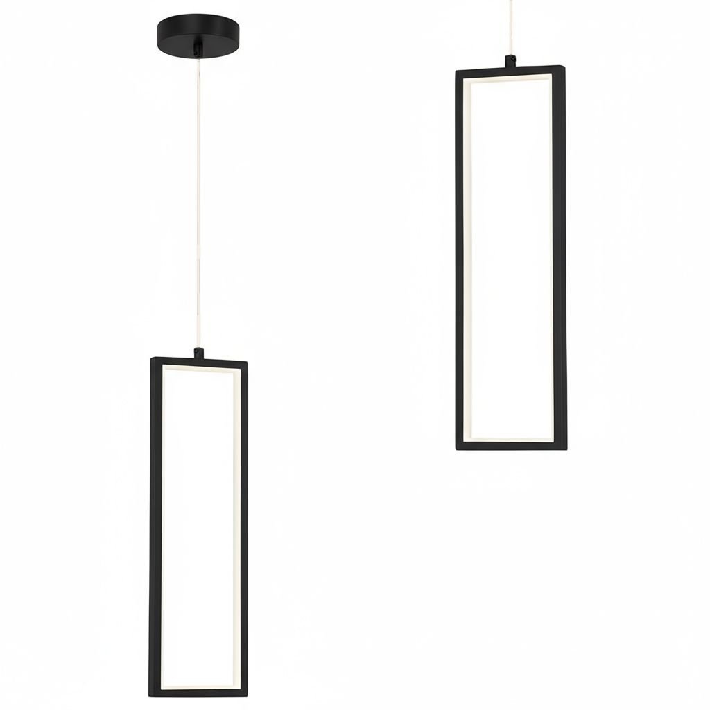 Tato moderní závěsná LED lampa v podobě minimalistického svislého obdélníku představuje ideální řešení pro milovníky architektonické čistoty a geometrických tvarů. Štíhlá hliníková konstrukce v matně černém provedení působí v interiéru velmi decentně, přesto se díky svému netradičnímu pojetí stává výrazným designovým prvkem. Je navržena tak, aby v prostoru působila lehce a harmonicky, což z ní činí skvělý doplněk pro moderní byty, lofty i kancelářské prostory s důrazem na současnou estetiku.