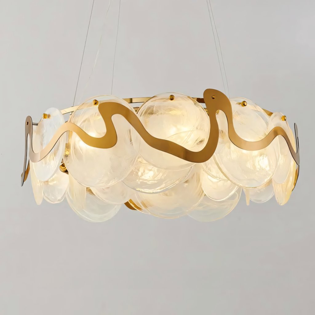 Svítidlo je osazeno osmi paticemi typu E14, což umožňuje dosáhnout vysokého světelného výkonu i ve větších prostorech. Specifická textura skleněných prvků zajišťuje, že vyzařované světlo je měkké, rovnoměrně rozptýlené a vytváří nastrojovou atmosféru bez oslnění. Volba žárovek je na uživateli, což dává plnou svobodu při nastavení barvy a intenzity světla podle charakteru interiéru.