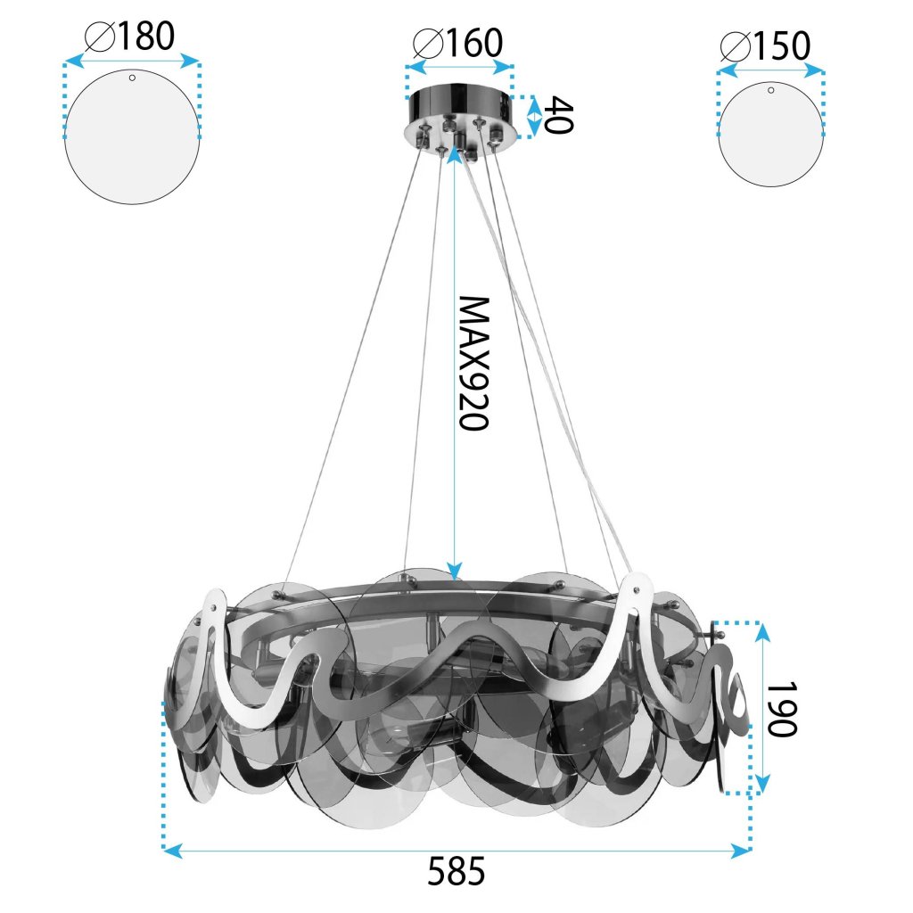 Svítidlo disponuje osmi paticemi typu E14, což umožňuje dosáhnout intenzivního a rovnoměrného osvětlení i ve větších prostorech. Díky použití 20 skleněných okruhů je světlo rozptylováno do více směrů, přičemž kouřový efekt skla zabraňuje nepříjemnému oslnění a dodává místnosti náladovou měkkost. Výběr žárovek je zcela na vás, což dovoluje přizpůsobit intenzitu i teplotu barvy světla vašim preferencím.