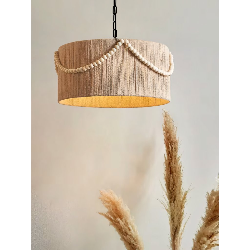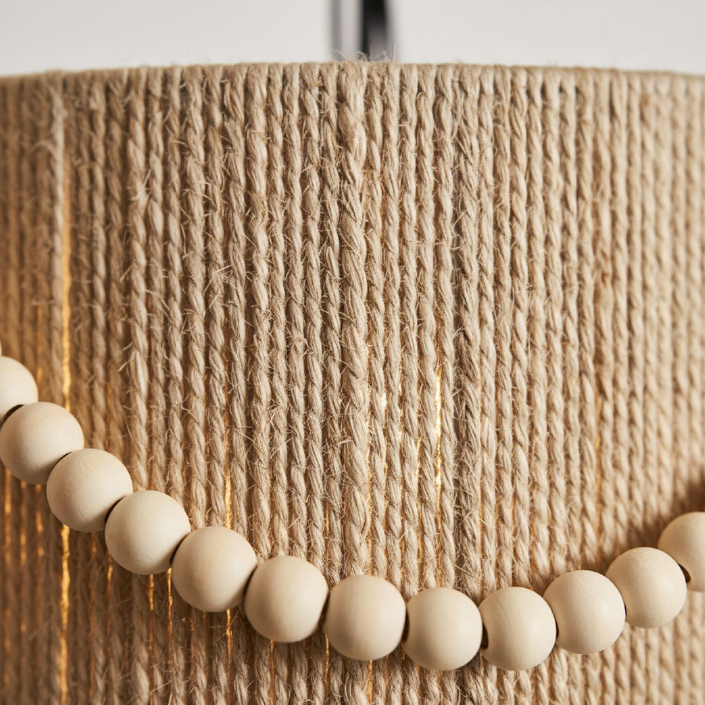 Tato závěsná lampa je ideální volbou pro milovníky přírodních materiálů a neotřelého designu. Kombinace jutového provázku a dřevěných detailů vnáší do domova harmonii a útulnost. Díky preciznímu zpracování a unikátnímu zdobení v podobě dřevěných korálků se svítidlo stává nejen zdrojem světla, ale i výrazným uměleckým doplňkem, který oživí jakýkoliv moderní či rustikální interiér.