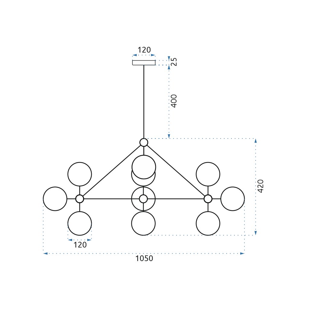 Představená lampa je jistě odvážnou volbou – není těžké si všimnout, že náš výrobek na sebe okamžitě upozorní.To vše díky mimořádně mnoha ramenům zakončeným závitem pro žárovku, což znamená, že lampa může napájet až deset světelných bodů!