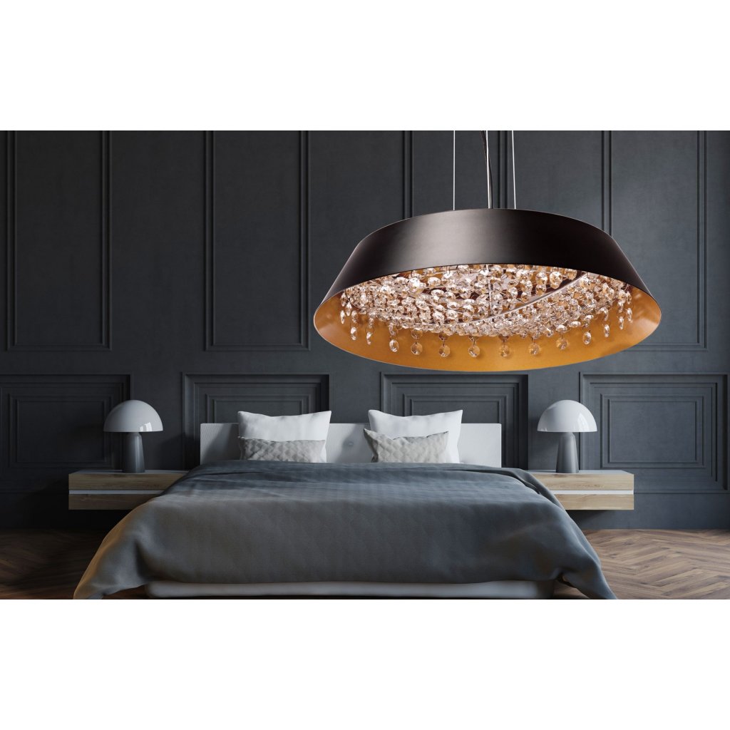 Křišťálové prvky dodávají lampě jedinečnou atmosféru, která se hodí téměř do každého interiéru.