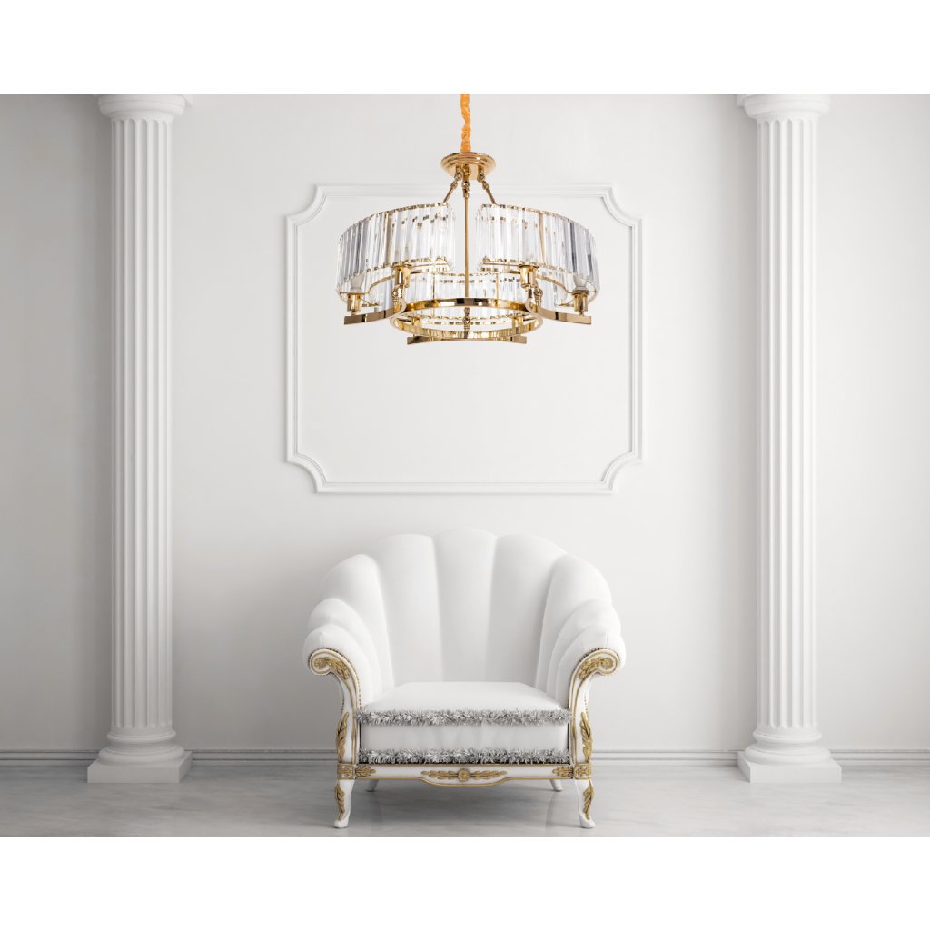 Klasické a elegantní Závěsná lampa je vyrobena z kovu a skla. Lampa má oblíbený závit určený pro žárovky E14. Křišťálové prvky dodávají lampě jedinečnou atmosféru, která se hodí téměř do každého interiéru.Doplňkové parametry