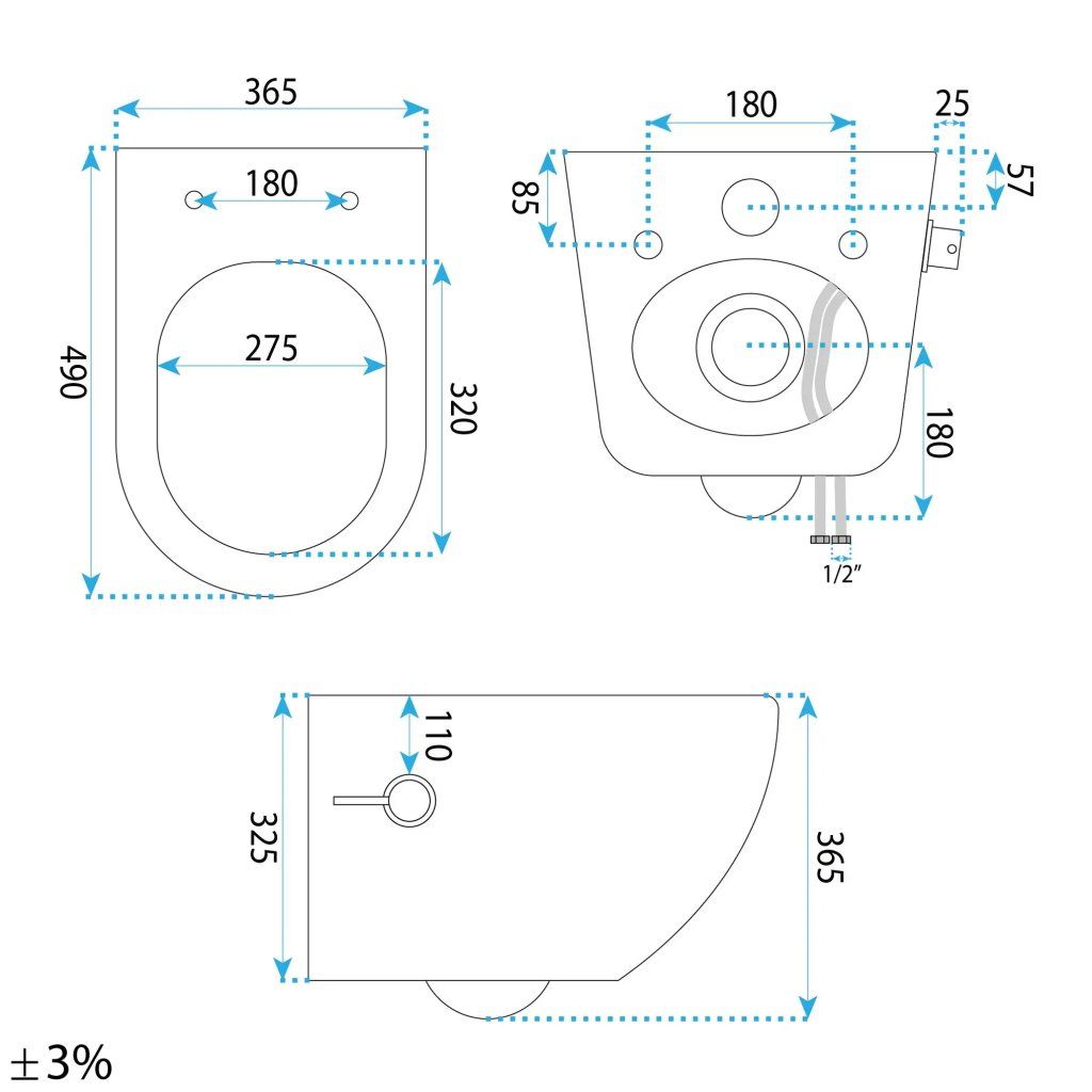 Přímo v keramice je zabudována bidetová tryska, která poskytuje okamžité a pohodlné osvěžení po použití toalety. Připojení je velmi snadné – součástí balení jsou připojovací hadičky se standardním závitem 1/2". Toto řešení je nejen vysoce hygienické, ale také neuvěřitelně praktické pro menší koupelny, kam by se jinak samostatný bidet jednoduše nevešel.